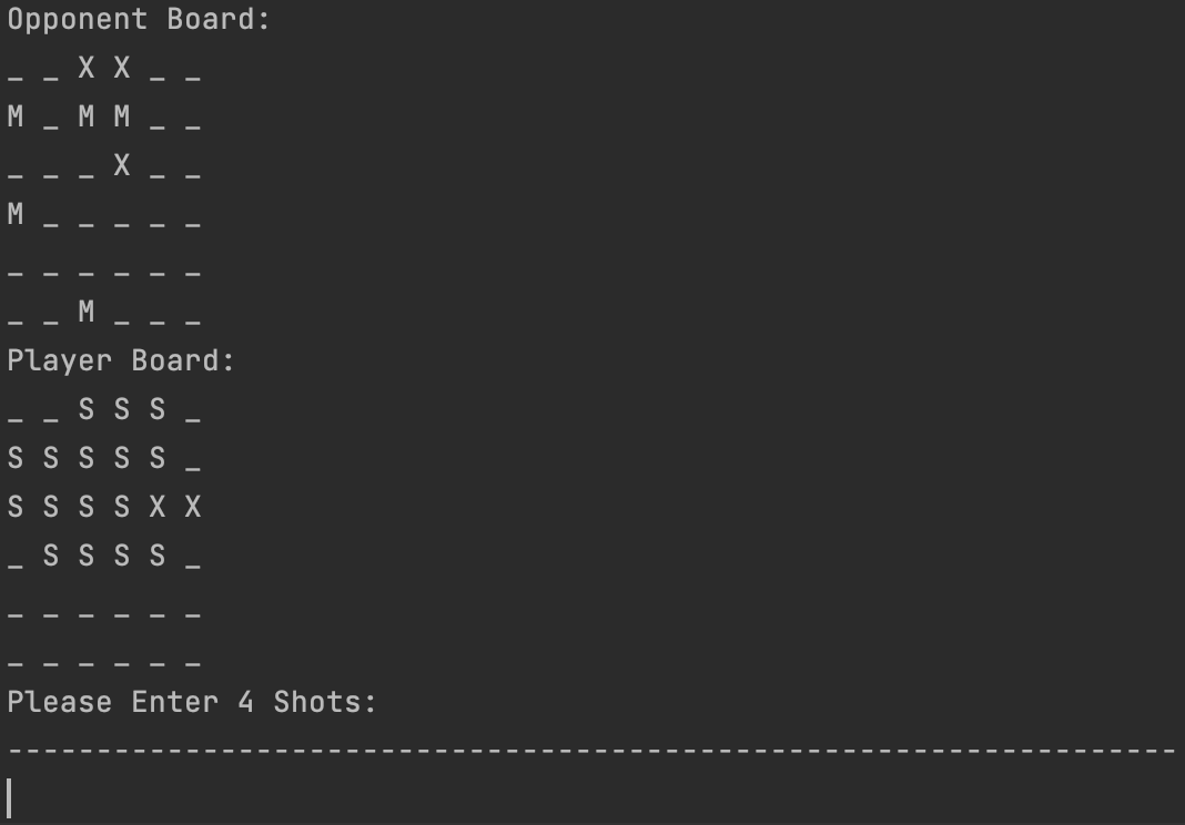 A modified version of the clasic Battleship game, which operates on the command line interface. Users can choose between playing single player, or have the computer player to play another computer remotely over a network connection.